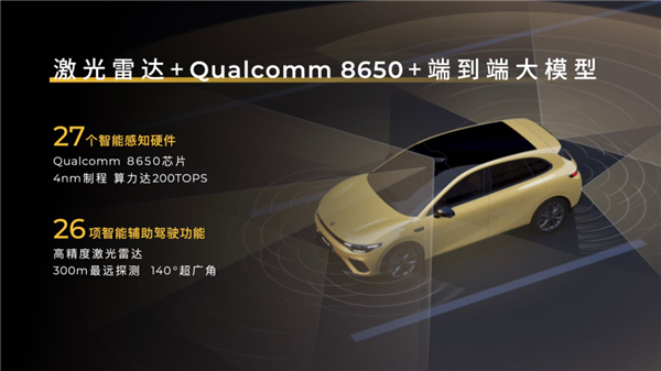 辅助辅助方面,配备包含一颗激光雷达在内的27个智能感知硬件和高通8650芯片的加持,等效算力能达到200TOPS,零跑Lafa5可以实现26项智能辅助驾驶功能,包括高速和城市通勤领航辅助,未来还可通过OTA升级城区领航功能。