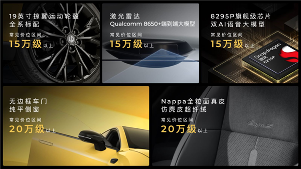 还全系标配了无边框车门和19寸运动轮毂,让车辆更具运动属性,同时,Lafa5还拥有过去车型不常见的个性化车漆,比如电擎黄、星夜蓝、摩根粉等。